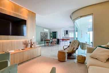 A integração dos espaços é um convite à convivência: a cozinha se abre para a sala, a sala se estende para os momentos em família e cada detalhe parece pensado para quem valoriza conforto e harmonia. E o solzinho que entra pela sacada deliciosa da sala, indescritível.