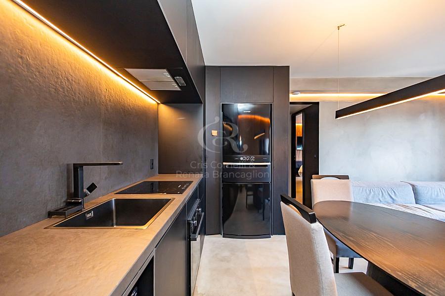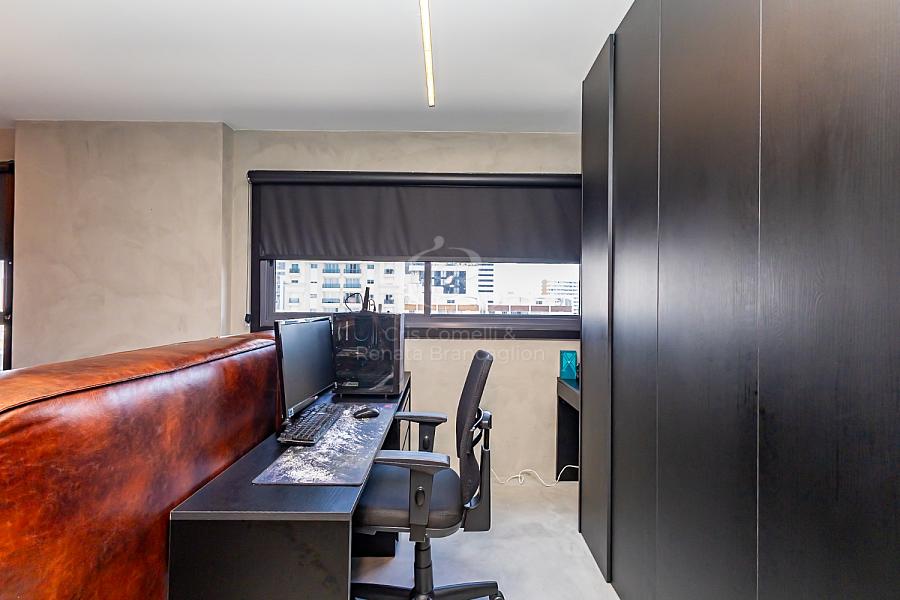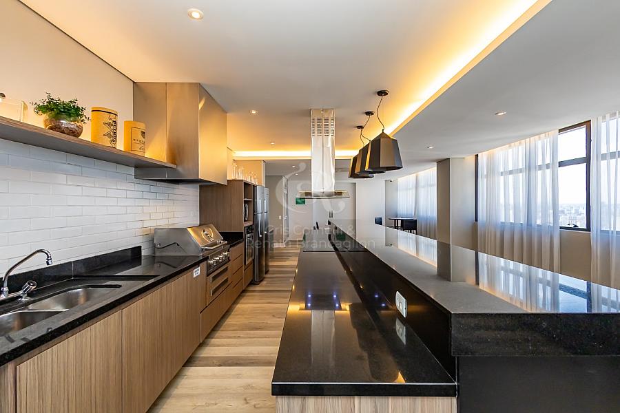 A sala com sacada convida para momentos únicos, seja aquele café da manhã com vista para a cidade ou um brinde ao entardecer. A cozinha integrada complementa o ambiente, trazendo praticidade e estilo moderno ao dia a dia.