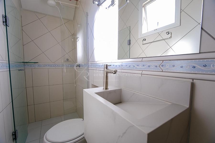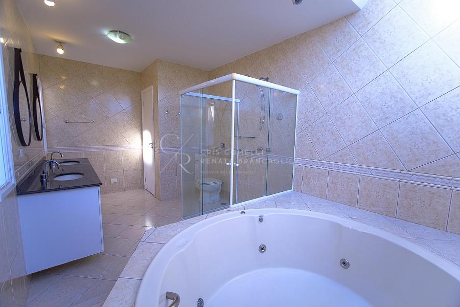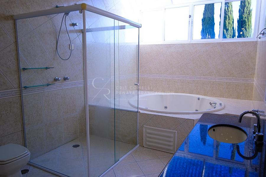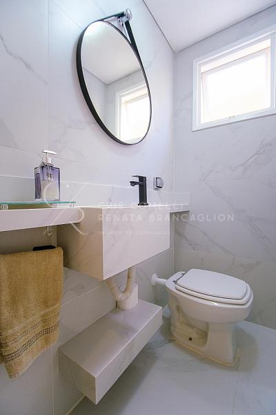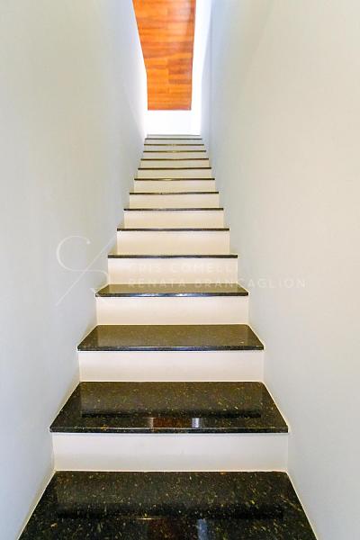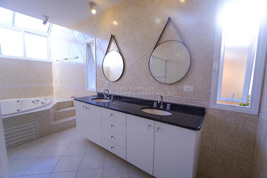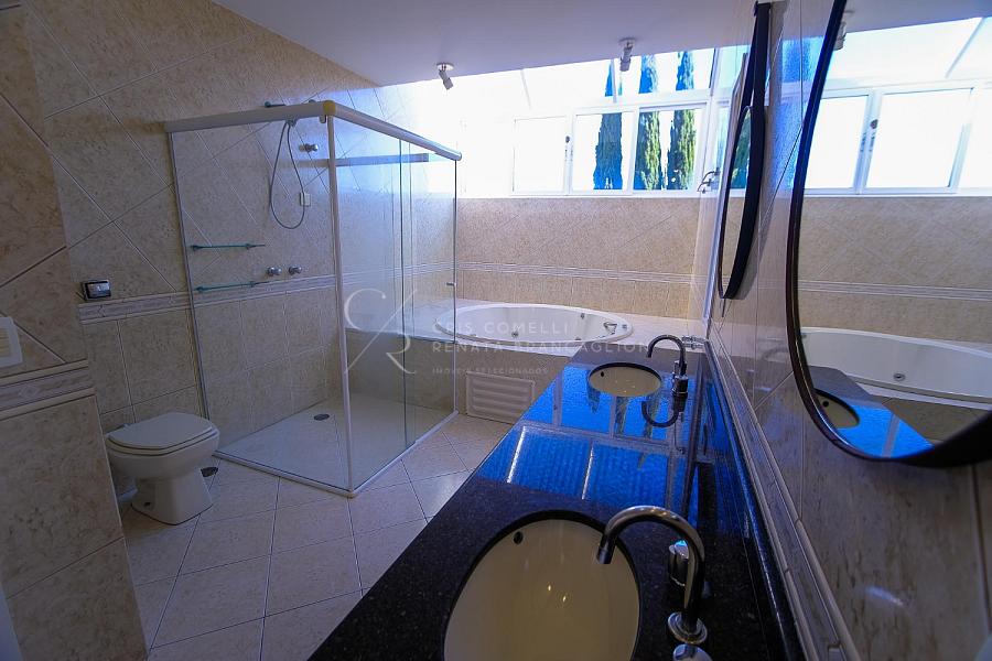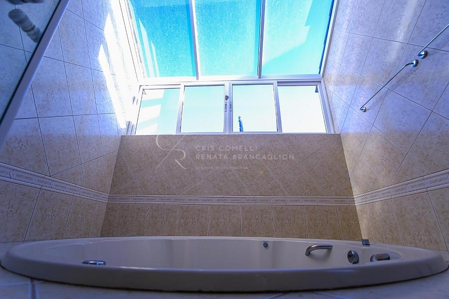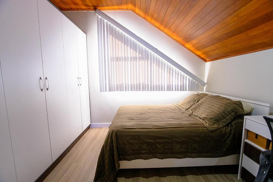 Uma deliciosa escada nos leva ao andar superior, onde encontramos 3 dormitórios amplos, sendo um deles uma suíte master com closet.  E o que é este banheiro da suíte?? De arrancar suspiros ao imaginar seus banhos energizados pela luz do sol.