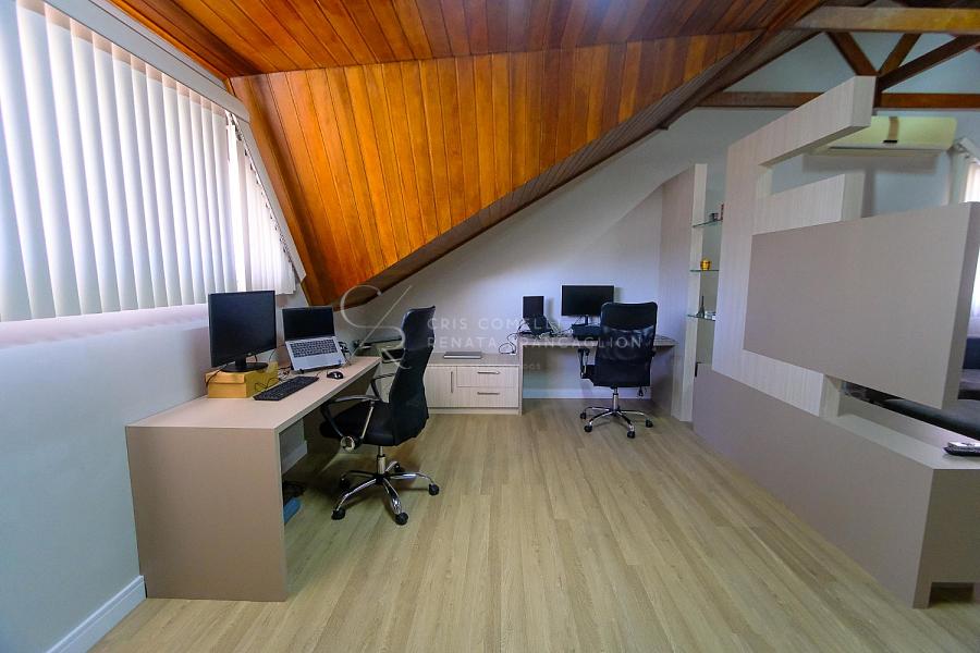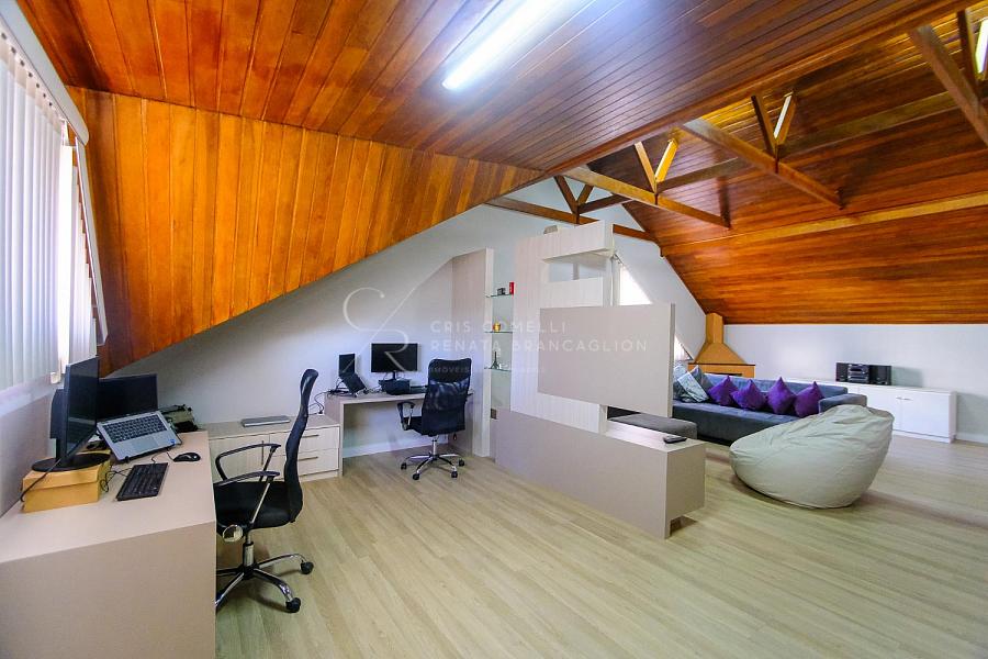 E ainda temos mais um andar, um espaço para te proporcionar agradáveis momentos em família, ou ainda, para os filhos adolescentes ficarem à vontade. Um ambiente super funcional com lareira e escritório. E você não vai acreditar?? Aqui tem uma suíte, perfeita para deixar sua visita com privacidade.
