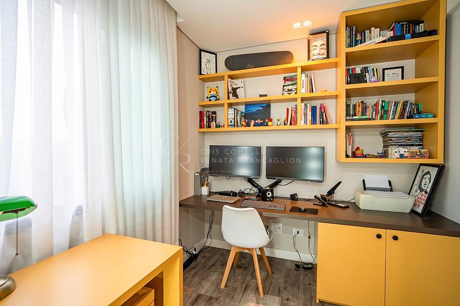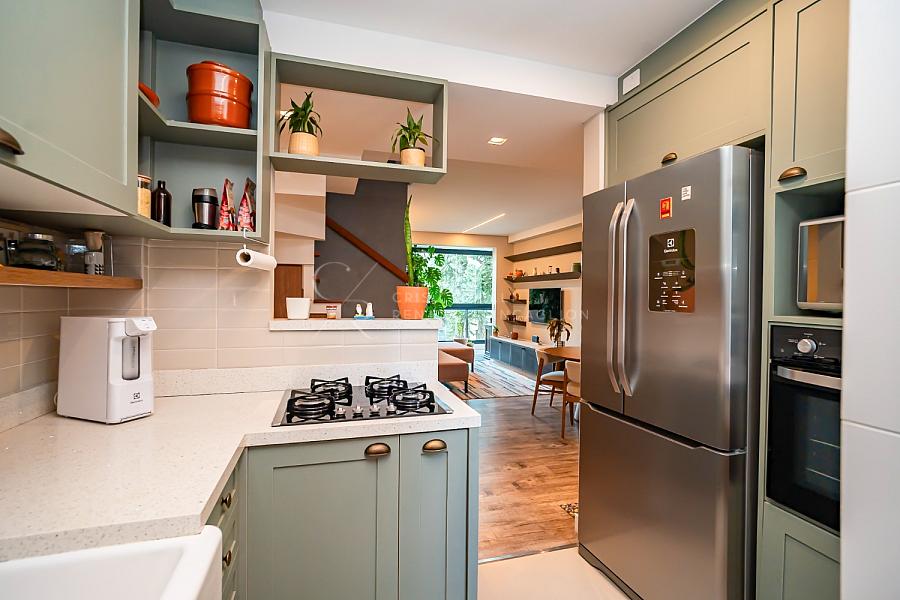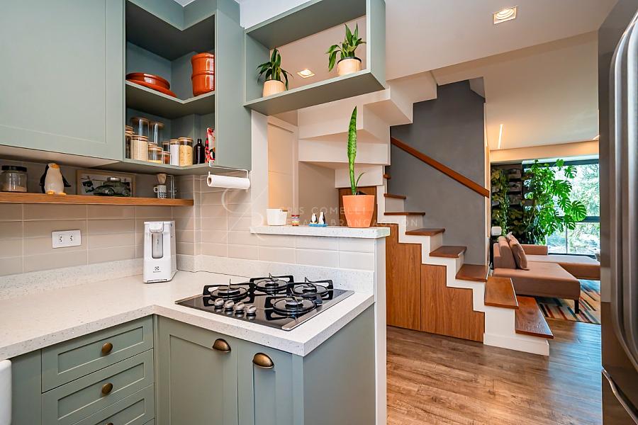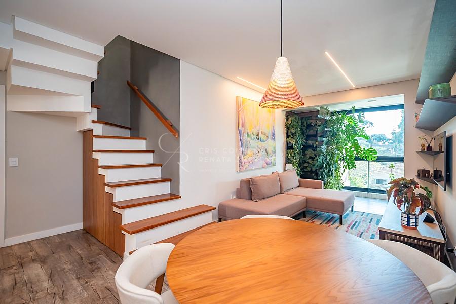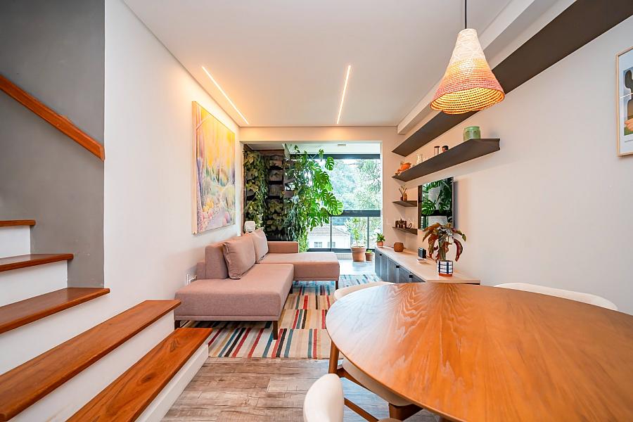 São dois quartos bem distribuídos, cozinha prática, e um diferencial raro: o elevador com acesso direto aos dois pavimentos, trazendo funcionalidade sem abrir mão do charme.