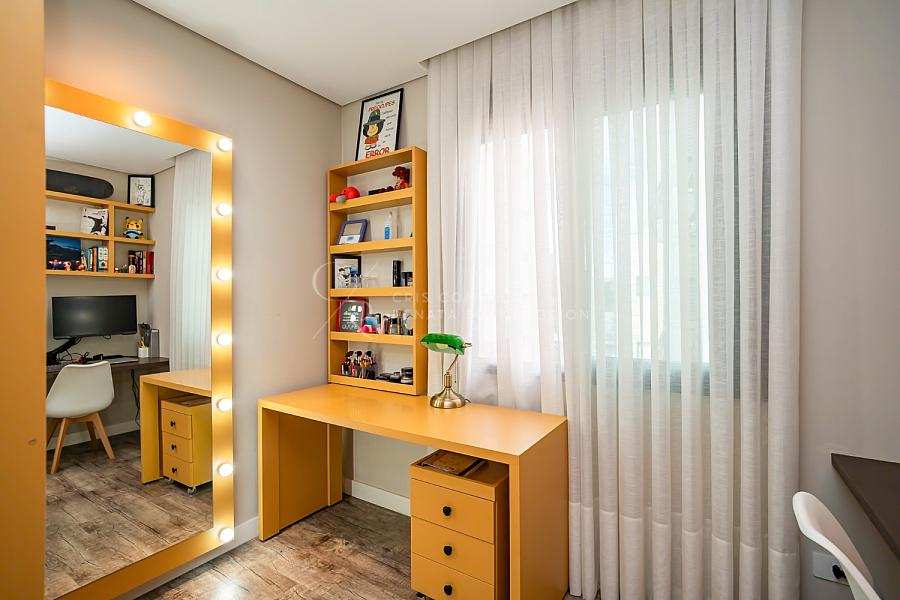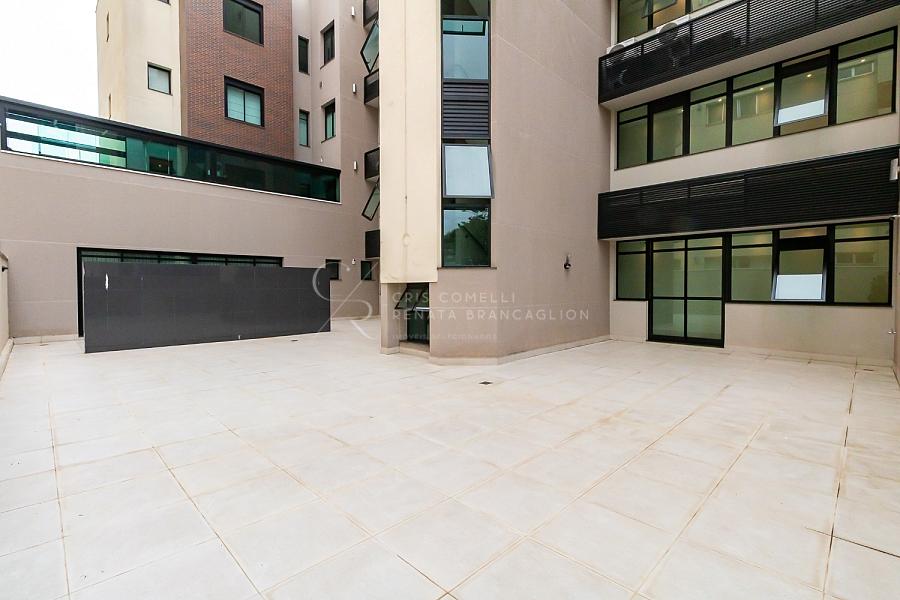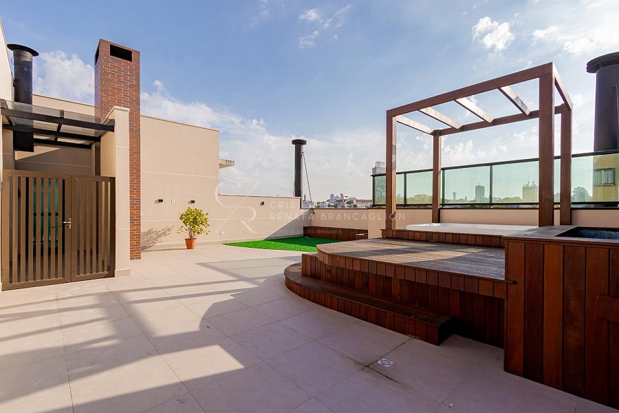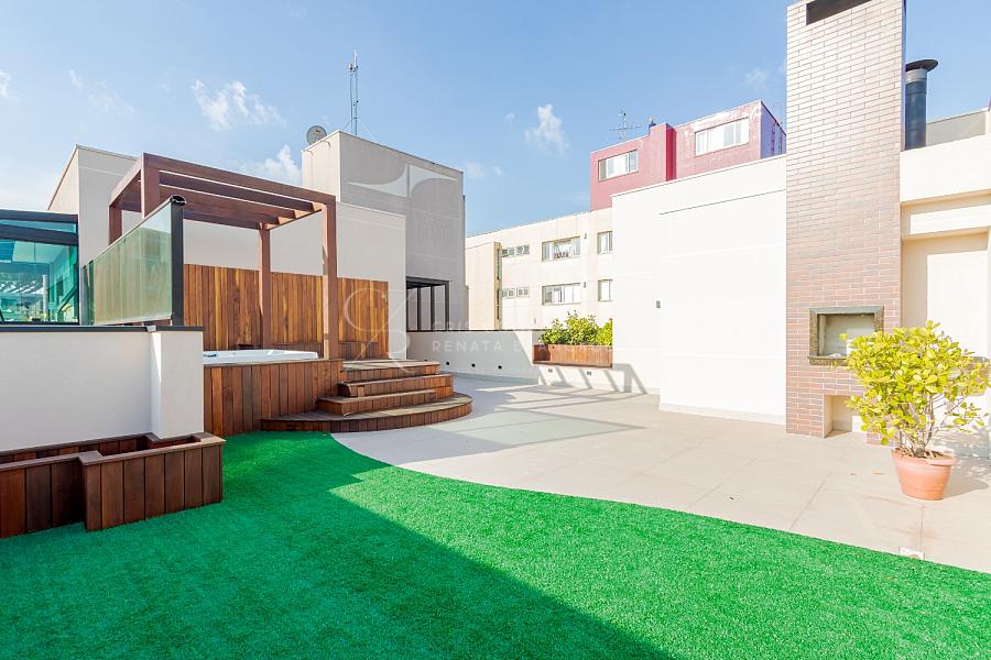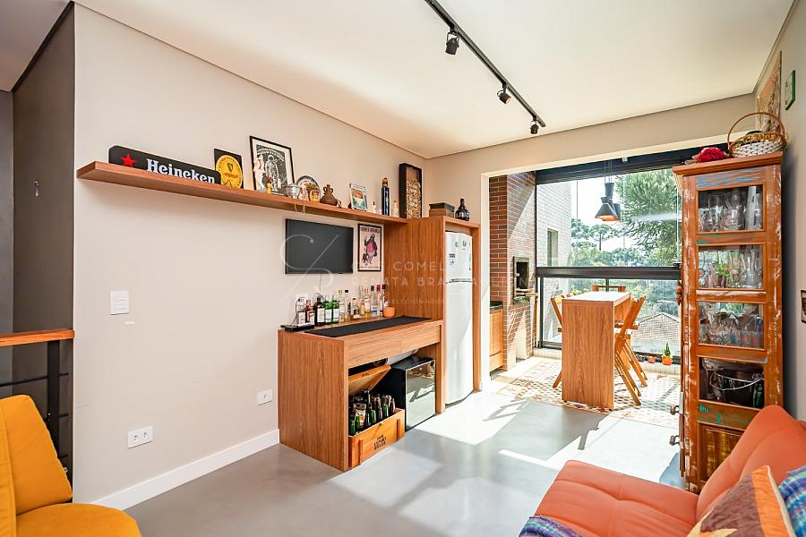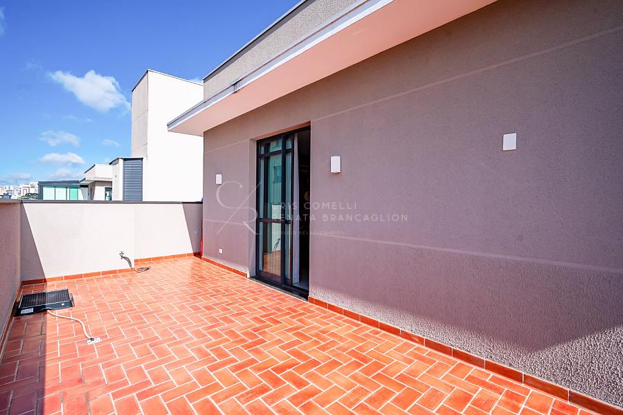 No andar superior, um espaço aberto fenomenal, com uma segunda churrasqueira e um terraço que convida o tempo a desacelerar. Perfeito para receber, para contemplar o céu de Curitiba ou simplesmente deixar os cachorros correrem livres sob o azul.