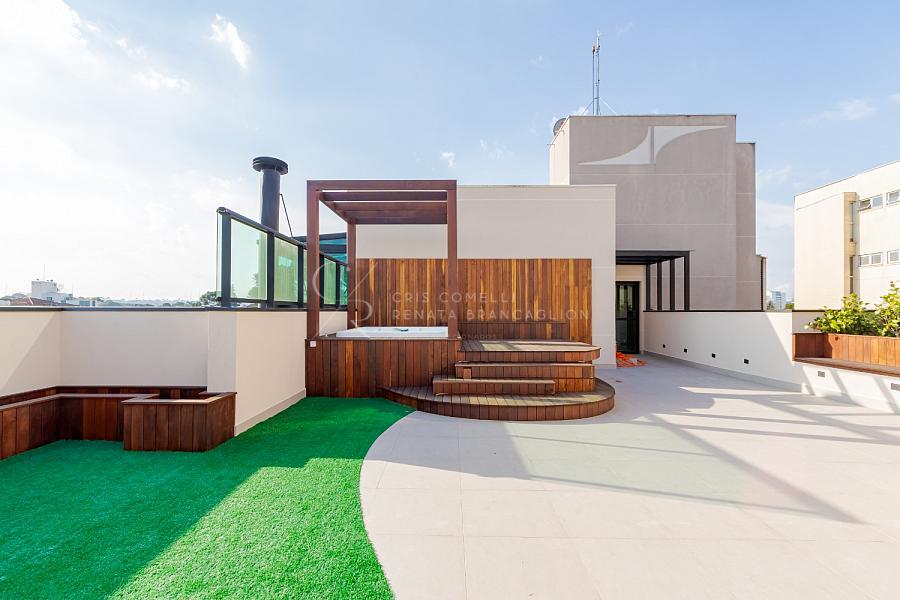 O condomínio conta com salão de festas, sala de jogos, academia, rooftop com jacuzzi e piscina.