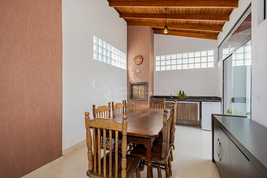 A sala de jantar conecta a uma deliciosa aérea gourmet com churrasqueira, espaço imprescindível, para compartilhar deliciosas memórias com as pessoas que amamos.