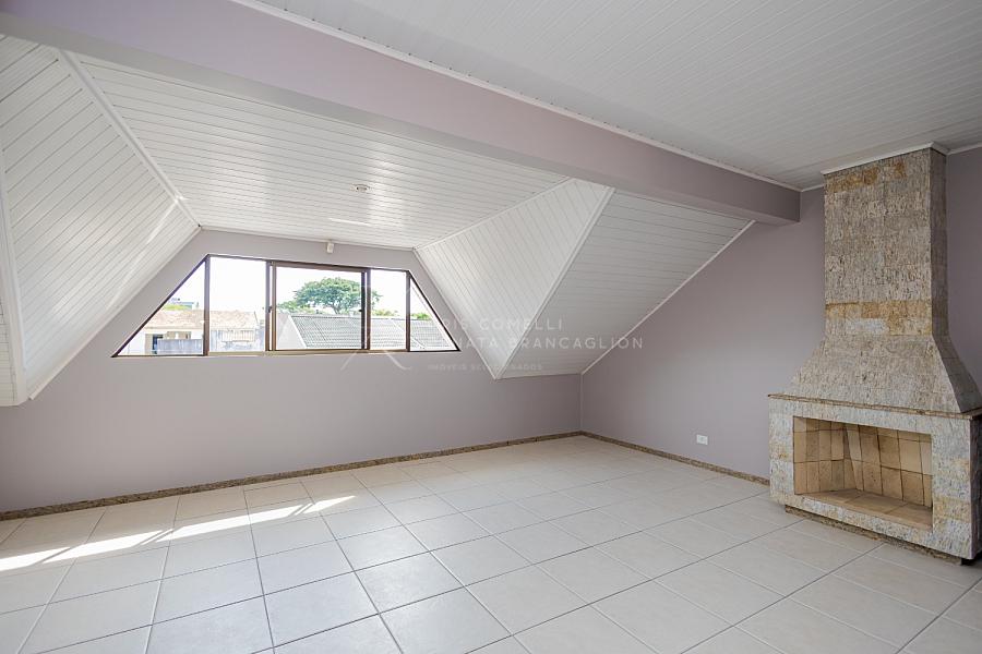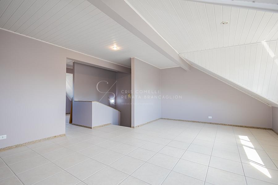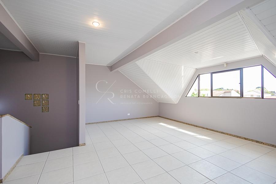 No terceiro piso, temos um espaço sensacional, amplo e com muita iluminação natural, te permitindo adaptar conforme a sua necessidade. Como por exemplo, uma outra suíte, escritório, sala de TV, sala de jogos. Este espaço conta com banheiro e uma lareira. Quanto espaço!
